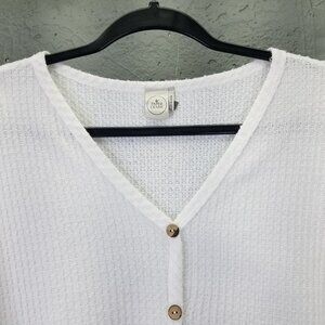 Paper Crane Anthropologie Waffle Knit Top Women's S Long Sleeve Thermal White