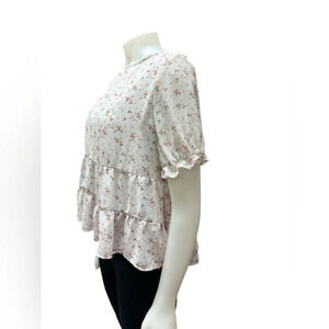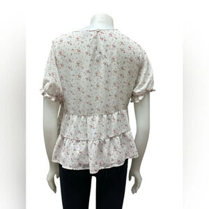 Paper Crane Floral Blouse Frilly White/Pink Womens Size Large