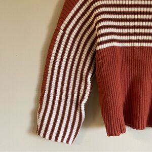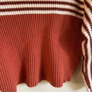 Paper Heart Ribbed Funnel Neck Striped Wide Sleeve Dolman Knit Sweater Boho