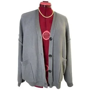 Beautiful, soft & snuggly. This oversized cardi is perfect for easy wear. Breathable cotton knit, oversized pockets and a spare button just in case. Warm grey goes with everything. Easy for layering! Lovely condition!