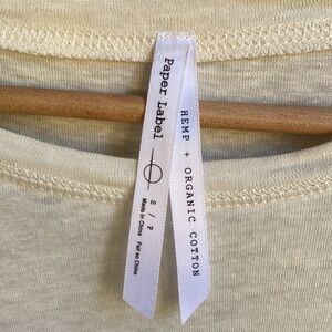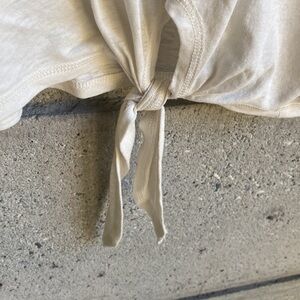 Gorgeous Hemp & Organic Cotton blend boxy tee with knit tie. I love this brand. The fabric is so luxurious. This top was gently pre worn by me. I still happened to have the tag pictured but this is a previously worn garment. It is a very light cream/natural off white color…not crisp white.