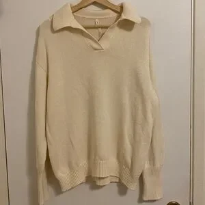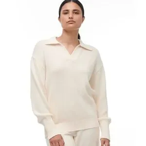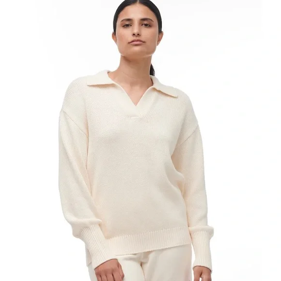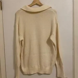 Caspian Split Collar Pullover by Canadian brand Paper label. 100% cotton in the colour cream. A lovely off white shade. Some minor signs of wear such as light pulls but overall great condition.