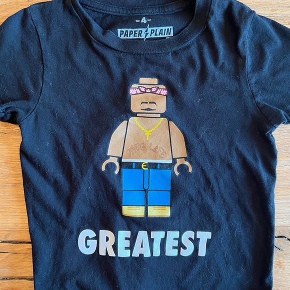 Paper Plain. Size 4T (boys). "Tupac Greatest" Lego block, black t-shirt. LOVE, LOVE, LOVE THIS SHIRT! ❤️. Excellent condition….no stains, snags, holes, etc.