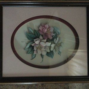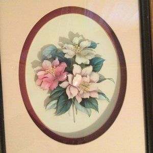 Paper Tole 3D Paper art flowers made by Canadian artist wood framed wall hanging