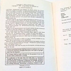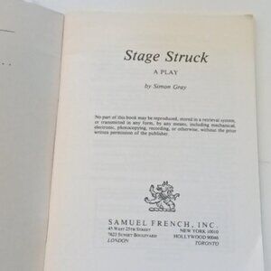 Paperback PLAY 'Stage Struck' a Play by Simon Gray Samuel French, Inc. 1981