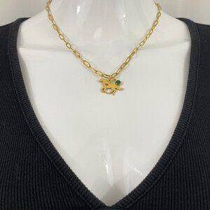 Paperclip Necklace with Horse and Birthstone