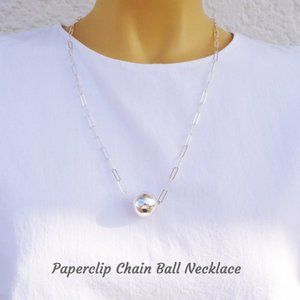 Paperclip Necklace with Silver Ball Sterling Silver Ball Necklace Stamped 925