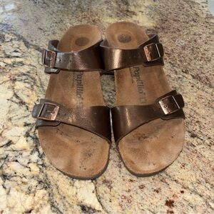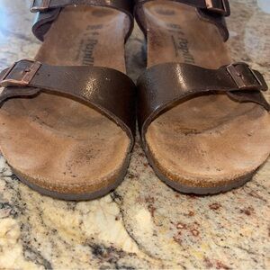 Experience ultimate comfort with Papillio's brown sandals, featuring two adjustable straps for a personalized fit. The contoured cork and latex footbed provides anatomical support, while the durable leather material ensures long-lasting wear. Perfect for any casual outing, these sandals combine practicality with a touch of style.