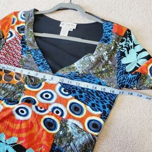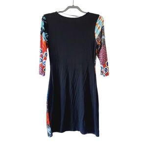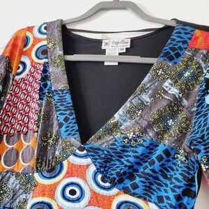 Papillon Artsy Patchwork Y2K V-Neck Stretch Jersey Boho Colorful Dress M