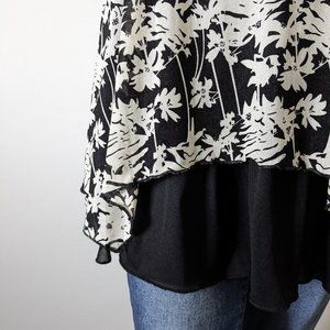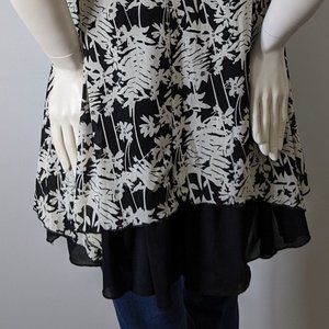 Papillon - Black w/ Cream Floral Sleeveless Tunic Top - Size S