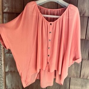 Papillon Blanc Chiffon Poncho Dolman 3/4 Sleeves One Size Apricot Colour