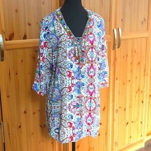 Papillon Boho Jewelled Paisley Print Tunic Blouse M