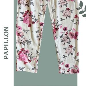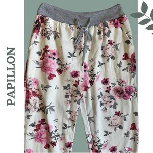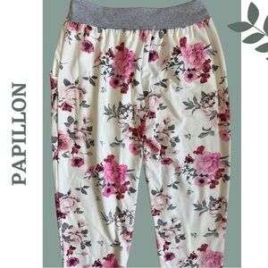 Papillon Floral Jogger Pant Front Pockets Contrast Waistband Pink Grey White XS