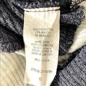 Papillon Gray & White Ribbed Long Sleeve Top, Soft Relaxed Fit Size S