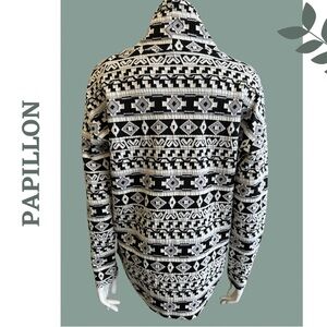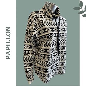 Papillon Mock Neck Aztec Print Pullover Black Cream Long Sleeve Size XS