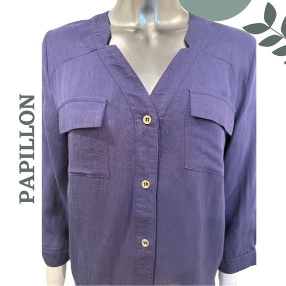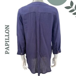 Papillon Navy Button-Up Shirt Tunic with Roll Sleeves | Relaxed Fit Size XS