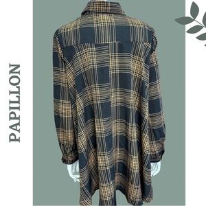 Papillon Plaid Tunic Swing Top Button Front Long Sleeve Black Brown