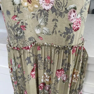 Papillon SS Rayon Spandex Floral Dress w Tiered Design Sage Green Grey Sz S NWT