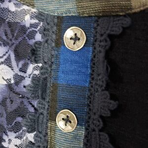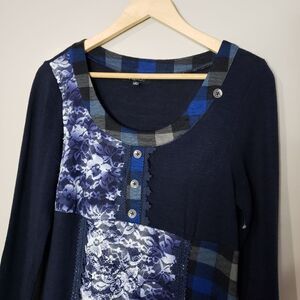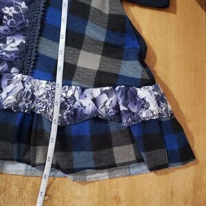 Papillon Small Long Sleeve Blue Lace Check Ruffles Grannycore Dress