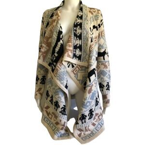 Papillon Women's Cascade Front Rabbit People Cardigan Size XS Blue Brown