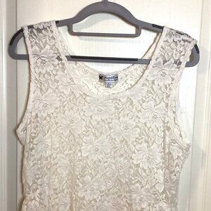 Papillon Women's White Lace Sheer Sleeveless Tank Top High-Low Beach Cover-up