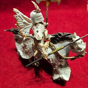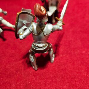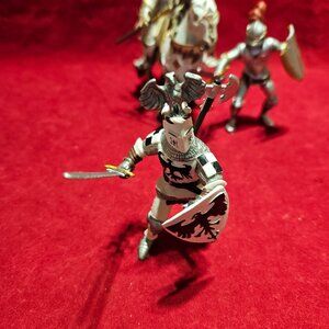 These knights are in very good condition and come from a smoke free home. Please check the photos carefully for any damage as I do not accept returns. Please note that the horse knight has had two weapons replaced. The spear is metal and although a great upgrade for appearance and durability are better suited for older children. The Axe on the horse back figure is plastic. If you have any question please ask, I will do my best to answer in a timely manner.