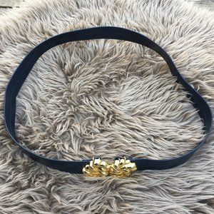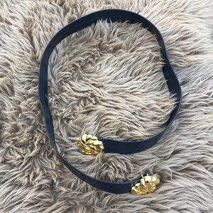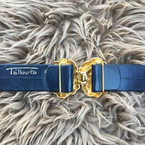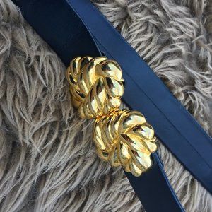 Signed Douglas Paquette gold-toned buckle on black leather Talbots belt.