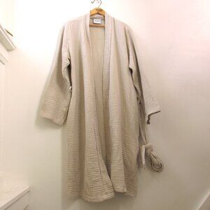 Luxurious cream robe with waffle texture. Soft and cozy. Perfect for lounging.