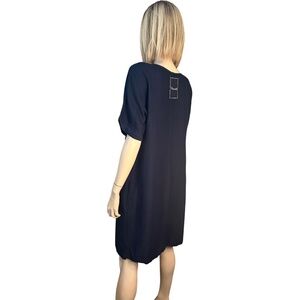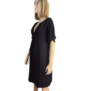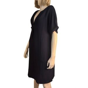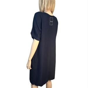 Paradis Linen & Rayon Dress Tunic Style Short sleeve Hip Pockets Versatile Navy