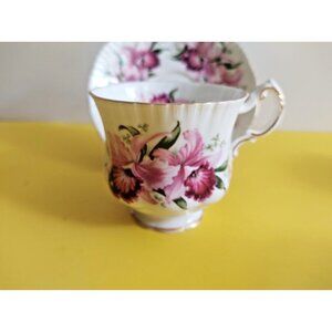 Paragon Bone china tea cup and saucer set Pink & Purple Iris Orchids