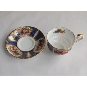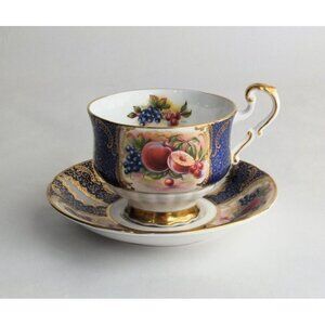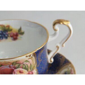 Paragon Cup And Saucer Orchard Fruit Pattern blue gold gilt teacup.