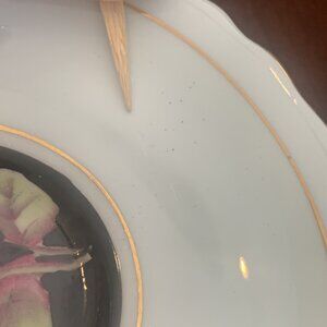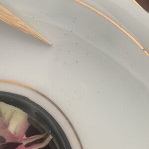• Saucer has minor manufacturing flaws including black speckles from the painting process and a surface scratch (not a crack).