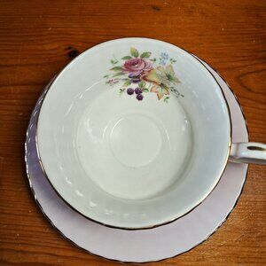 Paragon vintage bone china teacup & saucer, white, gold, pink