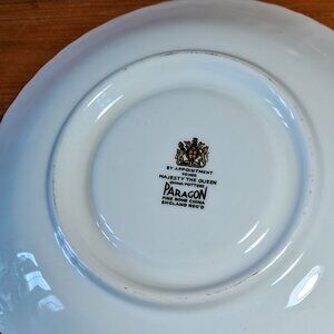 Vintage Paragon Bone China Teacup and Saucer, White, Gold, Pink for Her Majesty The Queen.