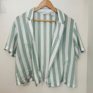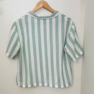 Paraphrase Women’s Short Sleeve Button Up Size M Cotton White and Mint Green