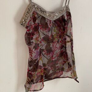 Parasuco 100% Silk Floral Sequin Camisole Small