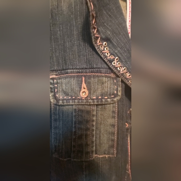 Copper buttons, pink embroidery. Barely worn. Fits like a medium size.