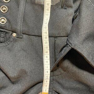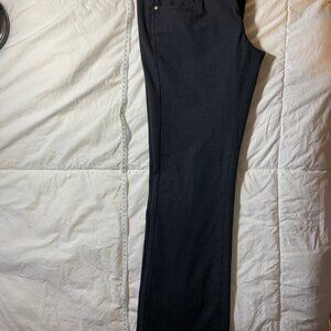 Black Parasuco Denim Legend pants, straight leg and size 28. It must be super comfortable given the slightly stretchy fabric and it looks like new! I machine washed it in cold water even though the label says ''Dry clean only'', it was a risk worth taking and it didn't damage the fabric at all; a word to the wise. Of course, I didn't put it in the dryer. These are low-rise pants that fasten in 3 ways, either with a button, a small zipper and 3 snap buttons. There are 2 pockets on the back, one of which is adorned with the ''Parasuco'' logo in small, very slightly shiny characters. There are also loops for a belt. There are no holes, stains or bad odors embedded. Non-smoking home.