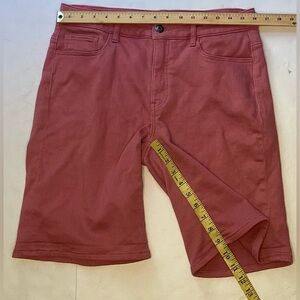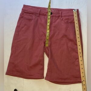 Rose coloured denim shorts, zippered, 5 pocket, midrise, in good condition