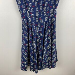 Parcel Navy Blue Owls Red Heart Print Sleeveless Dress Small