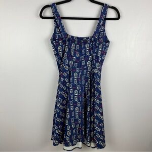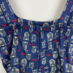 Parcel Navy Blue Owls Red Heart Print Sleeveless Dress Small