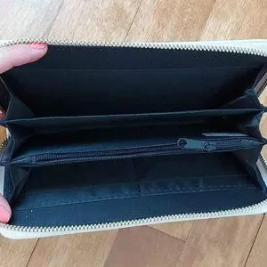 Never used. Beautiful wallet to store your cards, cheques, cash and small belongings. Measures 8 x 3.5 inches.