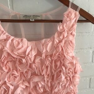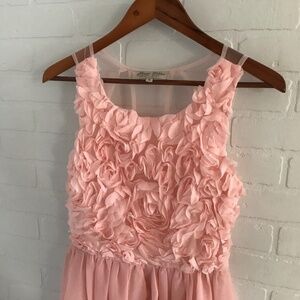Prom Romantic Wedding Bridemaid Blush rose Rosettes sheer flowy lightweight balletcore Formal Gown Roses Textured 3D Rosebuds Fairy
