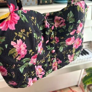 Parisian Black and Pink Floral Tank Top Cropped M
