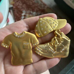 Park Lane Brooch Set Gold Hi-Top Running Shoe Hat And T-Shirt Rhinestones