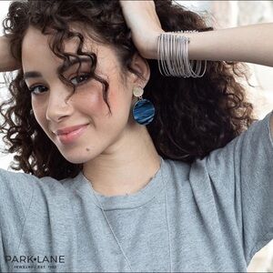 Matt silver discs on top of hand dyed acrylic discs (11/4” diameter)with hues of greens and rose on predominately greyish black, total length 2”