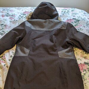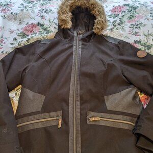 Waterproof, 3/4 length, very warm, removable fur on hood. Double zipper, knit wrists with adjustable straps. Ski, winter, coat, jacket, warm, snowboard, snowshoe, toboggan.