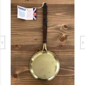 Vintage souvenir brass wall decoration has a map of the Lake District (United Kingdom) in the centre of the "pan". Brass with wooden handle, made in England by Parkbrass. 12" long x 4 1/2" across. Good pre-owned condition, minor surface wear.