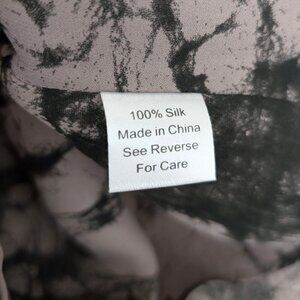 This dress by Parker is made of 100% silk and is covered in clear sequins from top to bottom. The dress has 3/4 length sleeves, a round neckline, a single button at the back of the neck, a full lining, and an abstract pattern in black and taupe. The fit is slightly looser and falls around or just above the knee. Despite being covered in sequins, the dress doesn't feel overly heavy and the silk has nice movement. The dress has normal wear, and only one small issue. On the back towards the bottom there is a small area with what looks like 2 or 3 loose threads and maybe a couple sequins missing (see last pic). It's not very noticeable at all given the height and the dress's overall sheen, but it is present. I have also since snipped the extra threads around the tag, which were probably the "worst" sign of wear.