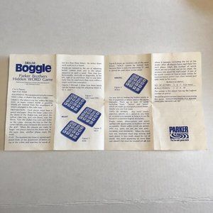 Parker Brothers Deluxe Boggle hidden word game with self-scrambling shaker. Shake up the 16 letter cubes and try to discover as many hidden words as you can. Includes 16 letter cubes, plastic tray with square dome, instruction sheet and hourglass timer. 2 to 6 Players. Ages 8 to Adult.